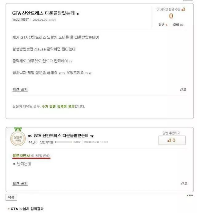 GTA가안되서지식인에글을올렷더니..