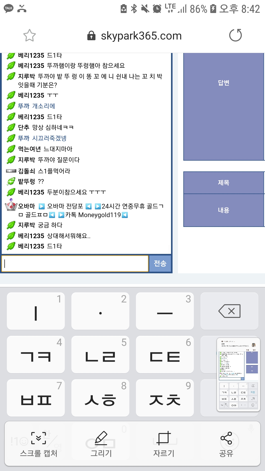 저건아니지.... 처리부탁드려요 영자님