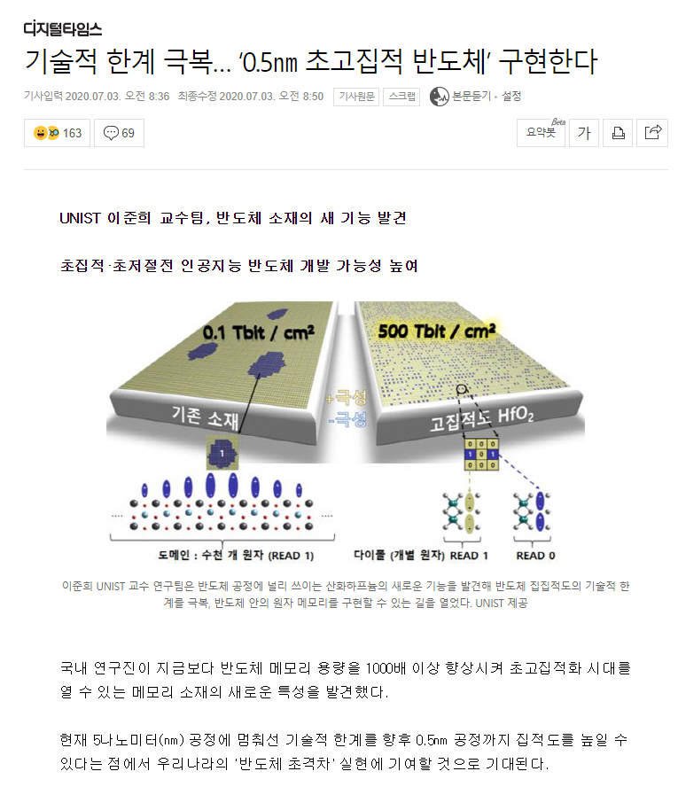 UNIST에서 메모리용량 1000배 향상시키는 기술개발
