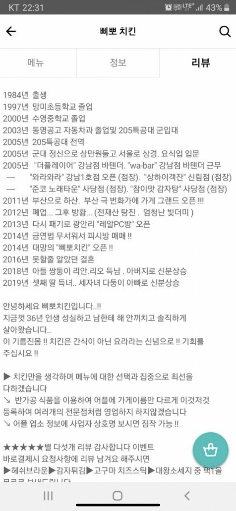 믿음직스러운 치킨집 사장님