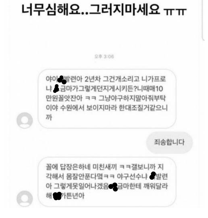 선수들이 도박꾼에게 받는 욕설 수위