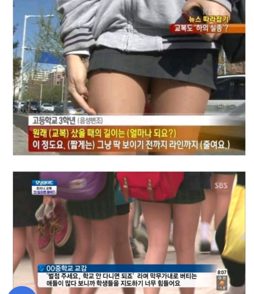 요즘 교복치마길이