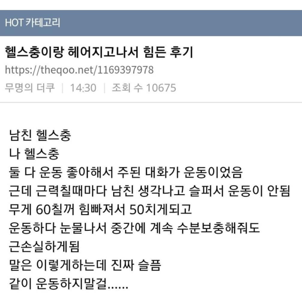 헬스충이 헤어지고나서 힘든 후기