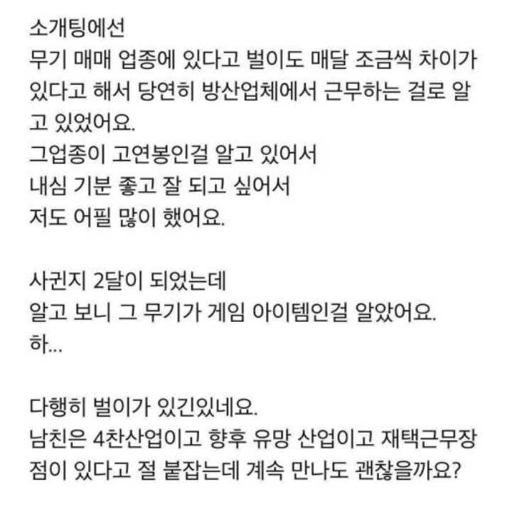 남친이 직장을 속였어요