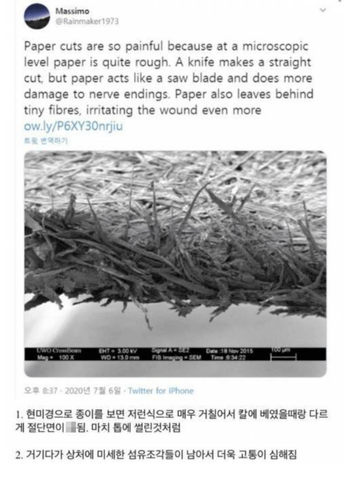 종이에 베이면 손이 아픈이유
