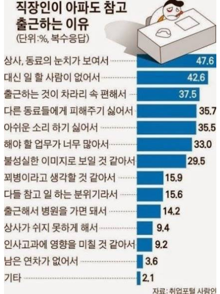 직장인이 아파도 참고 출근하는이유