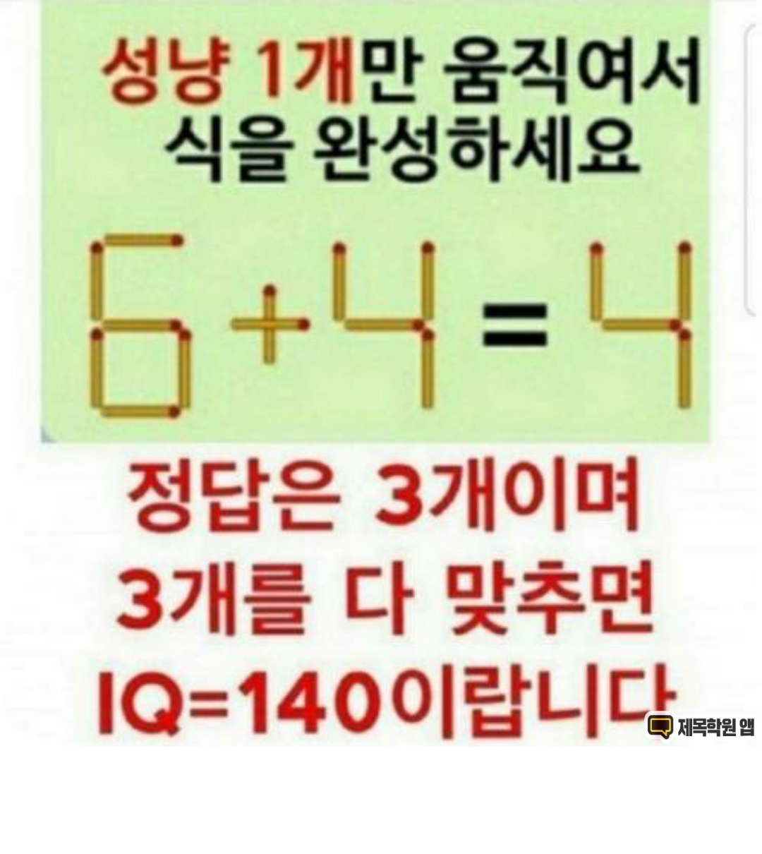 성냥 1개만 움직여서 식을 완성하시오.