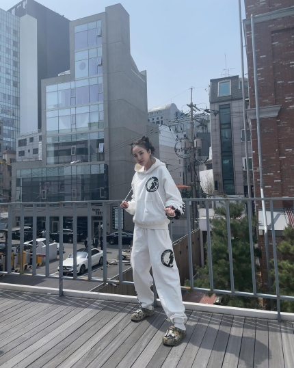 또 산다라박은 자칫 평범하게 느껴질 수 있는 출근룩 셋업을 유니크하게 소화해냈다. 시선을 사로 잡는 신발과 헤어스타일링 그리고 깜찍한 포즈가 더해져 산다라박의 동안미를 더욱 돋보이게 만들었다.