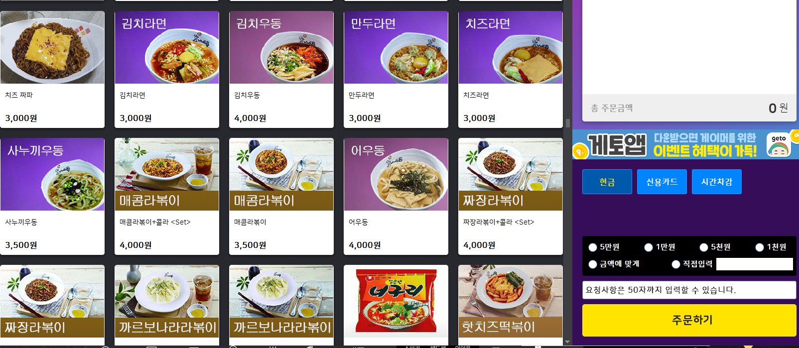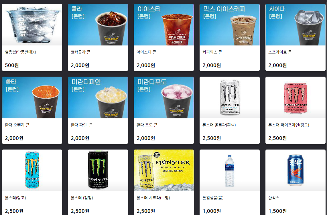 ?상천형님 피시방 메뉴입니다. 첫사진이 먹고싶은것입니다.