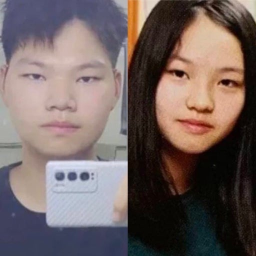 왼쪽 사진은 카리나의 과거 초등학교 졸업앨범 사진이며, 오른쪽 사진은 현재 모습이다