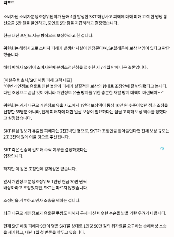 "1인당 10만 원 보상"‥SKT, '2조 3천억' 수용할까